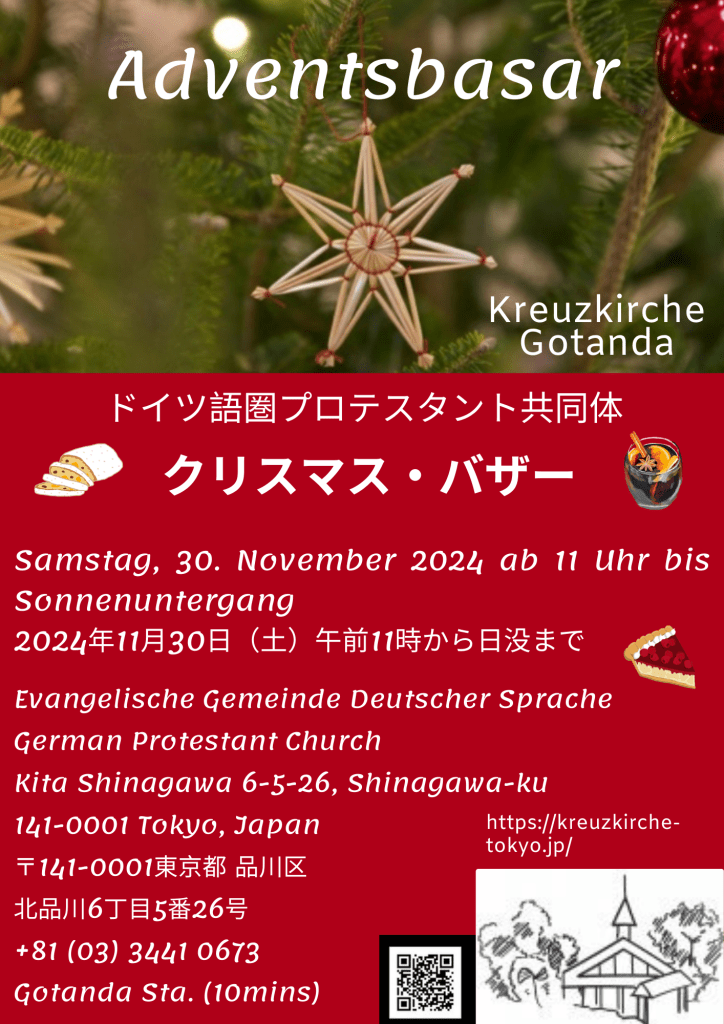 Jedes Jahr veranstaltet die Kreuzkirche auf ihrem Gelände einen Adventsbasar am Samstag vor dem 1. Advent. Dieses Jahr heißen wir Sie am 29.11.2025 dazu herzlich willkommen.